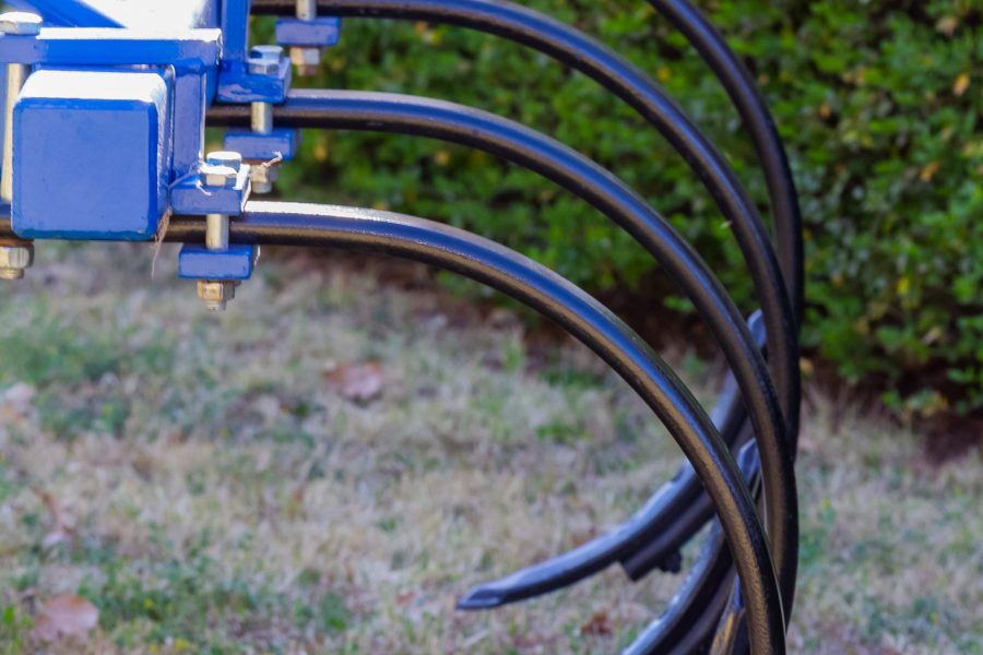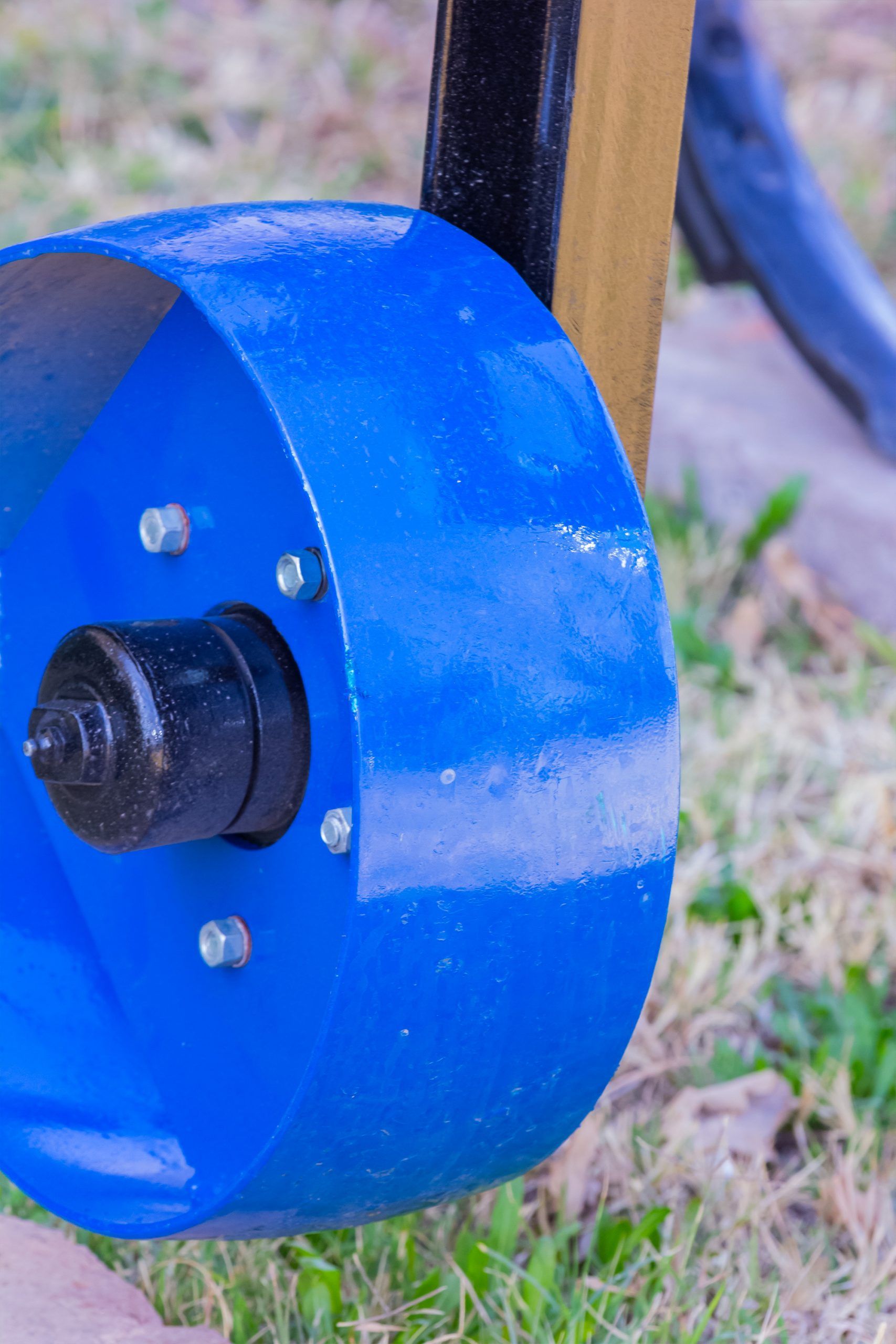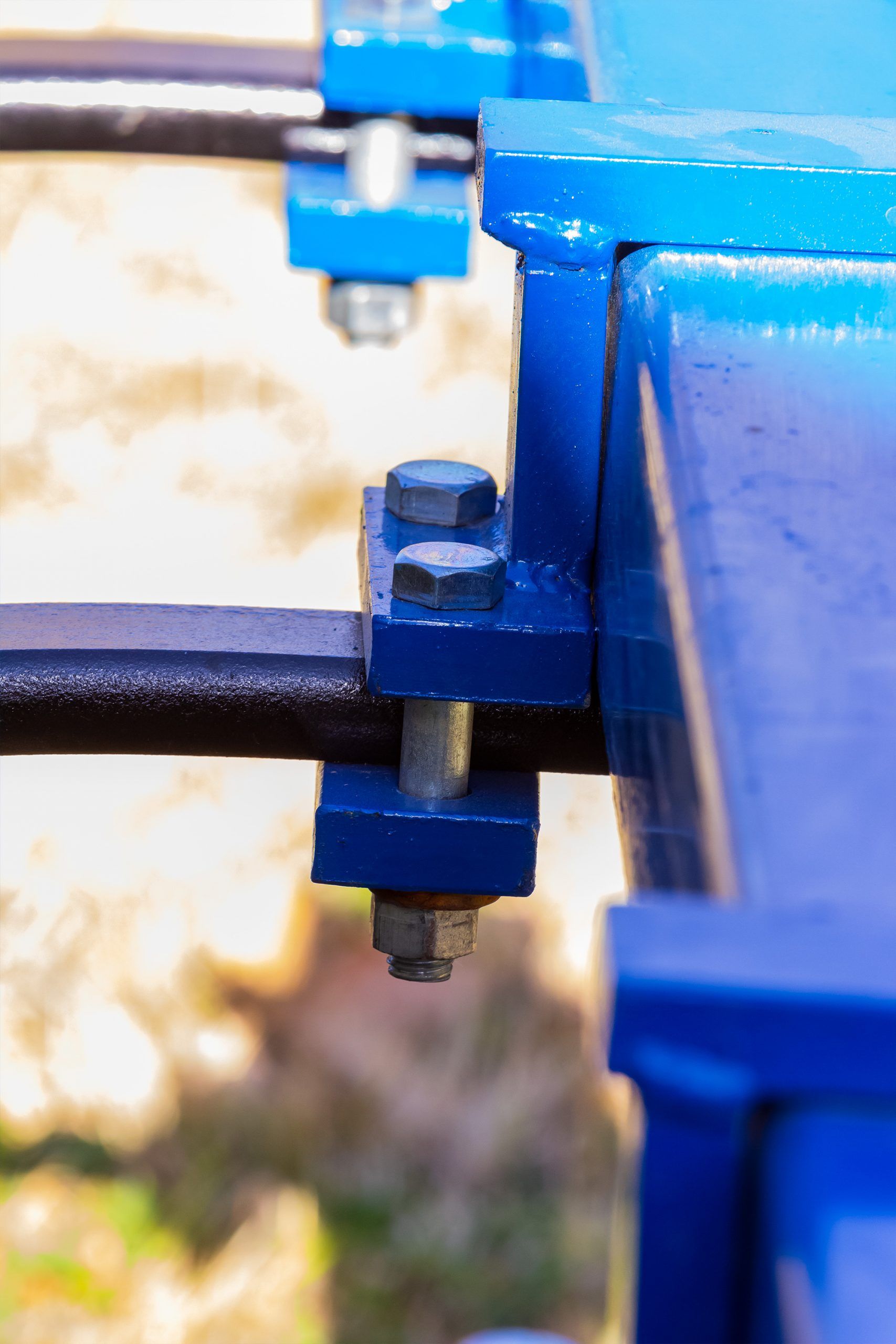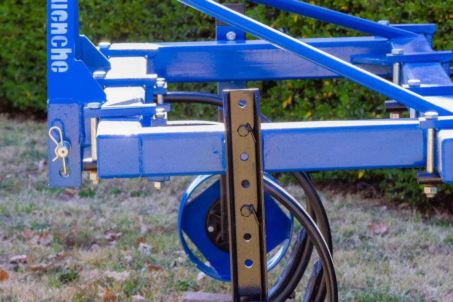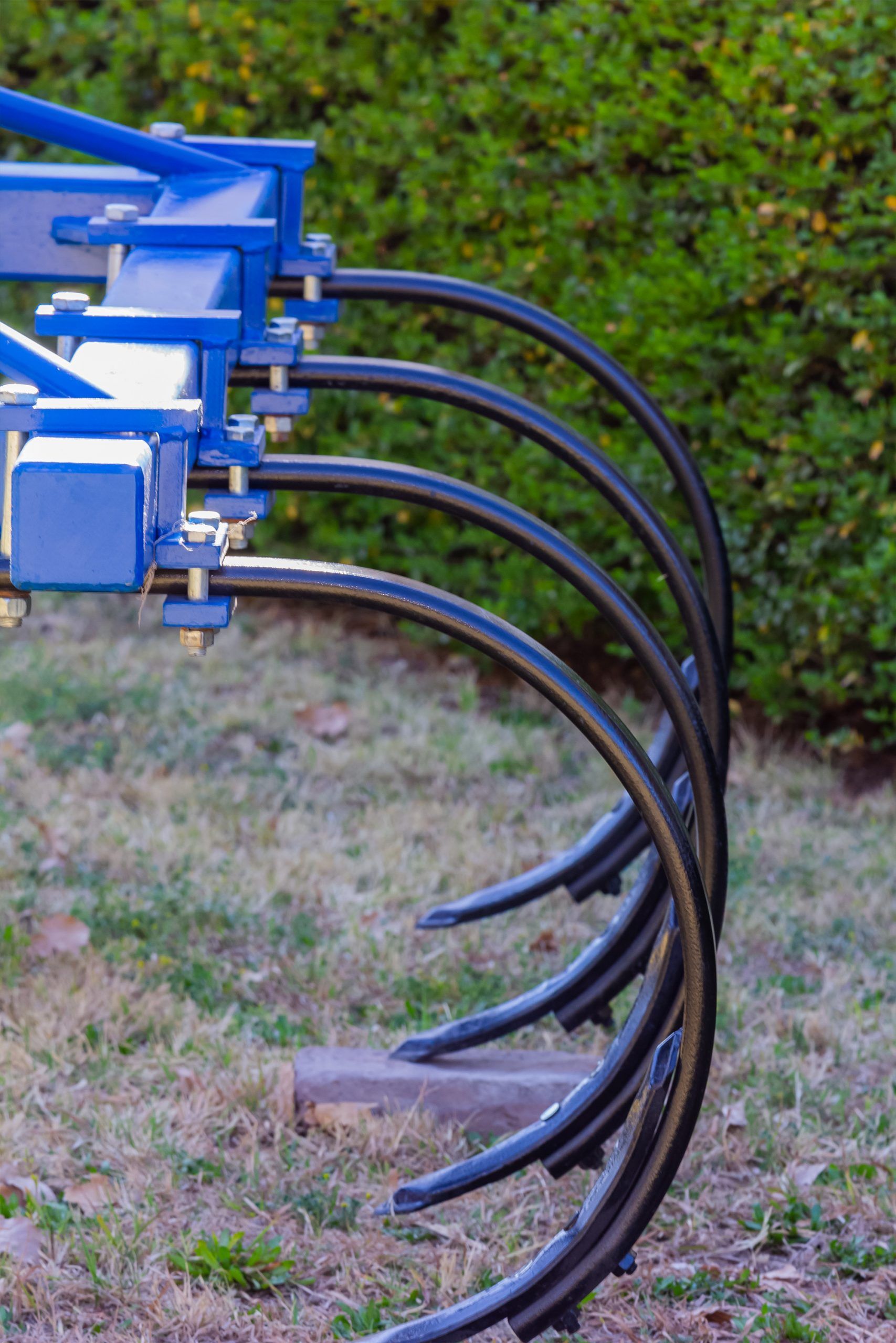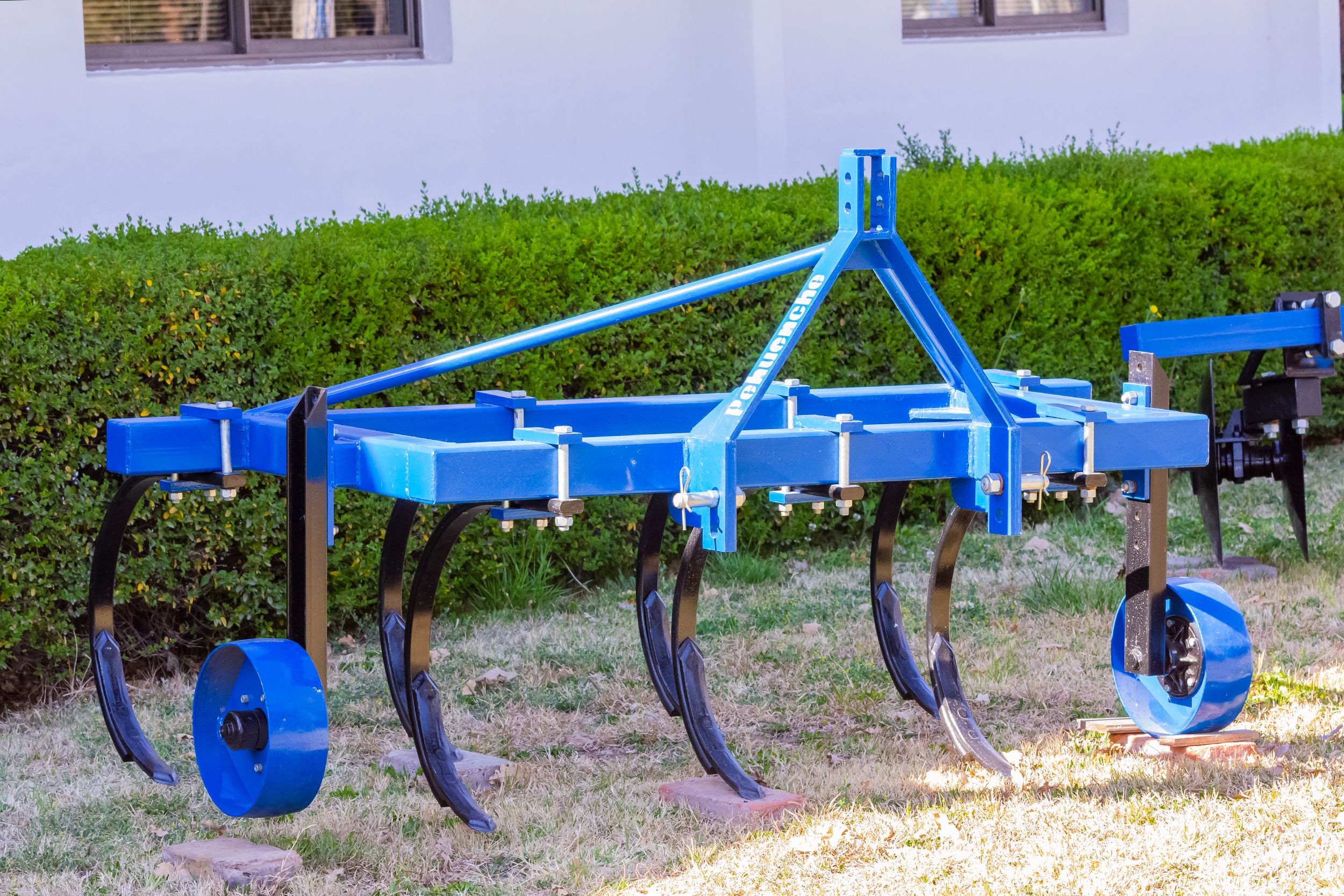 De acoplamiento hidráulico de tres puntos. Ruedas para control de profundidad de hierro. Arcos de cinceles de 1″ x 2″. Placas fijas con fusibles. La distancia entre cinceles puede ser regulada entre 250 a 350 mm.