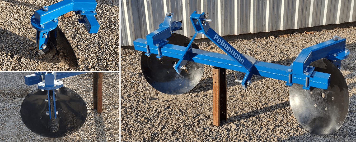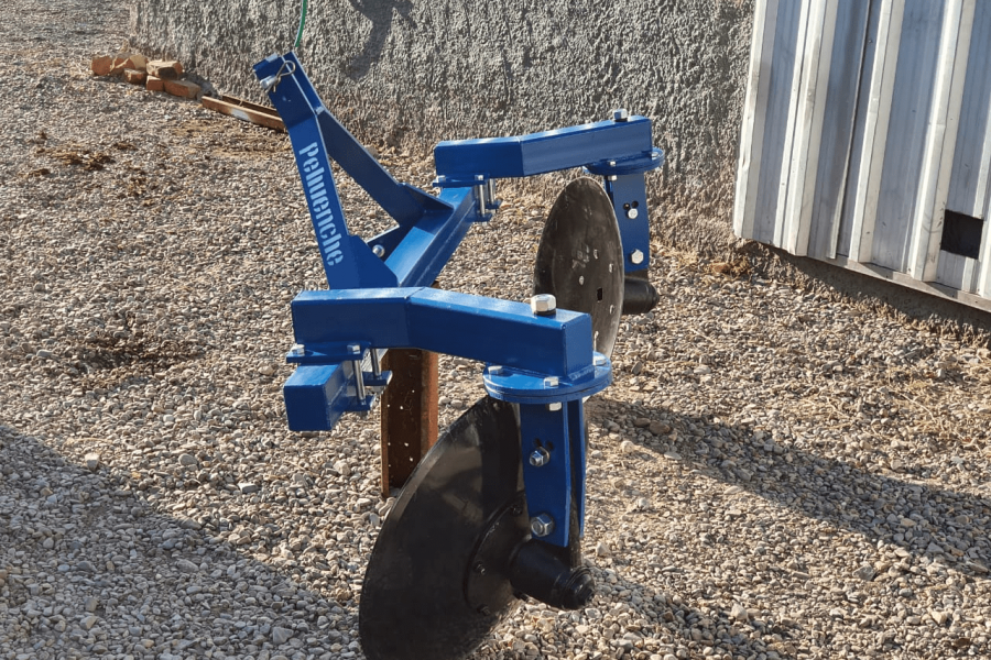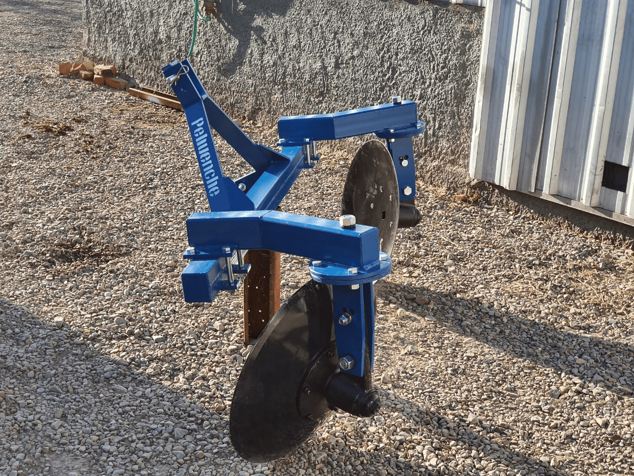 De levante hidráulico de tres puntos. Equipado con dos discos de 26″, ancho de trabajo regulable. La inclinación de los discos es variable. Montado sobre cojinetes a rodillos cónicos. Permite hacer bordos de riego.