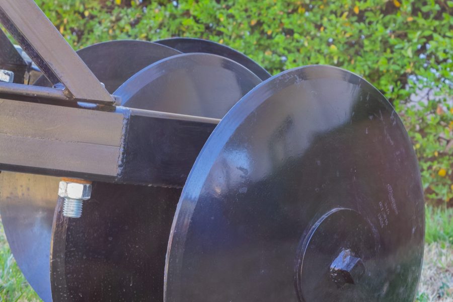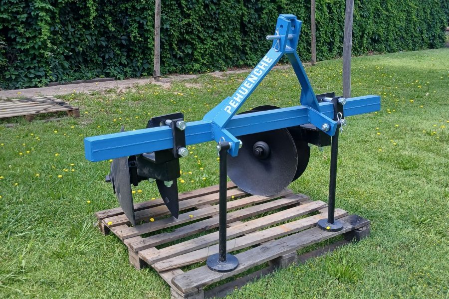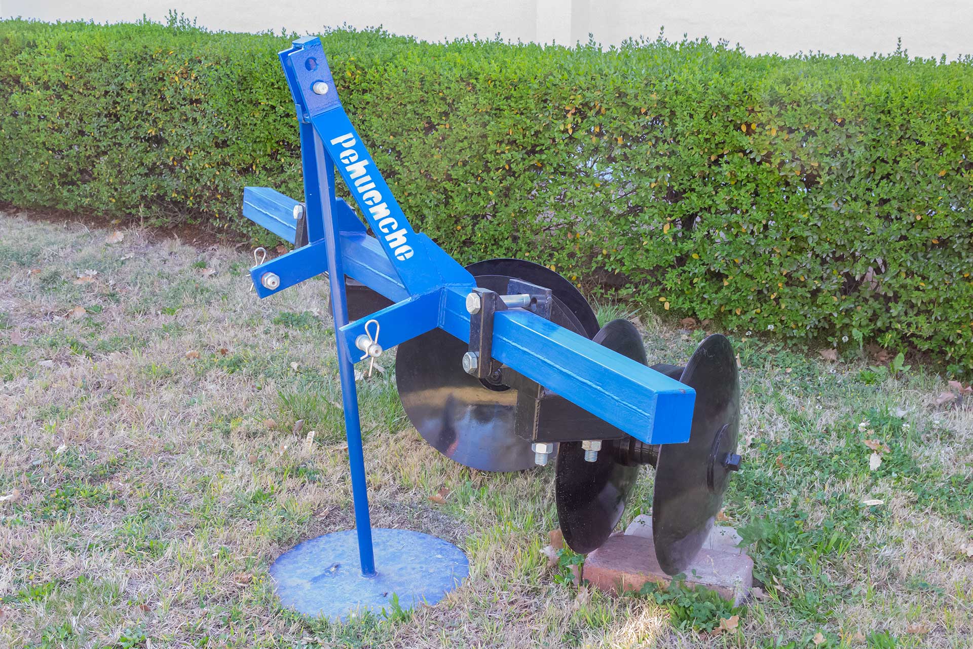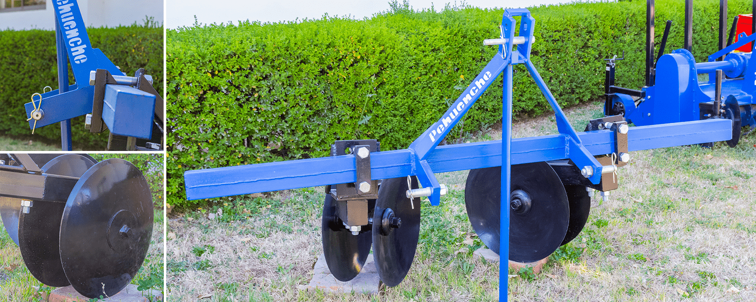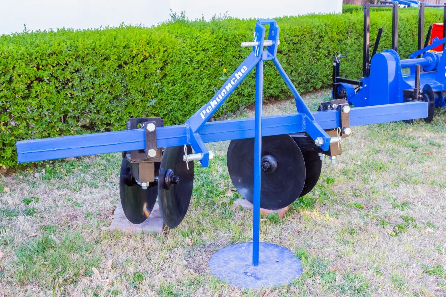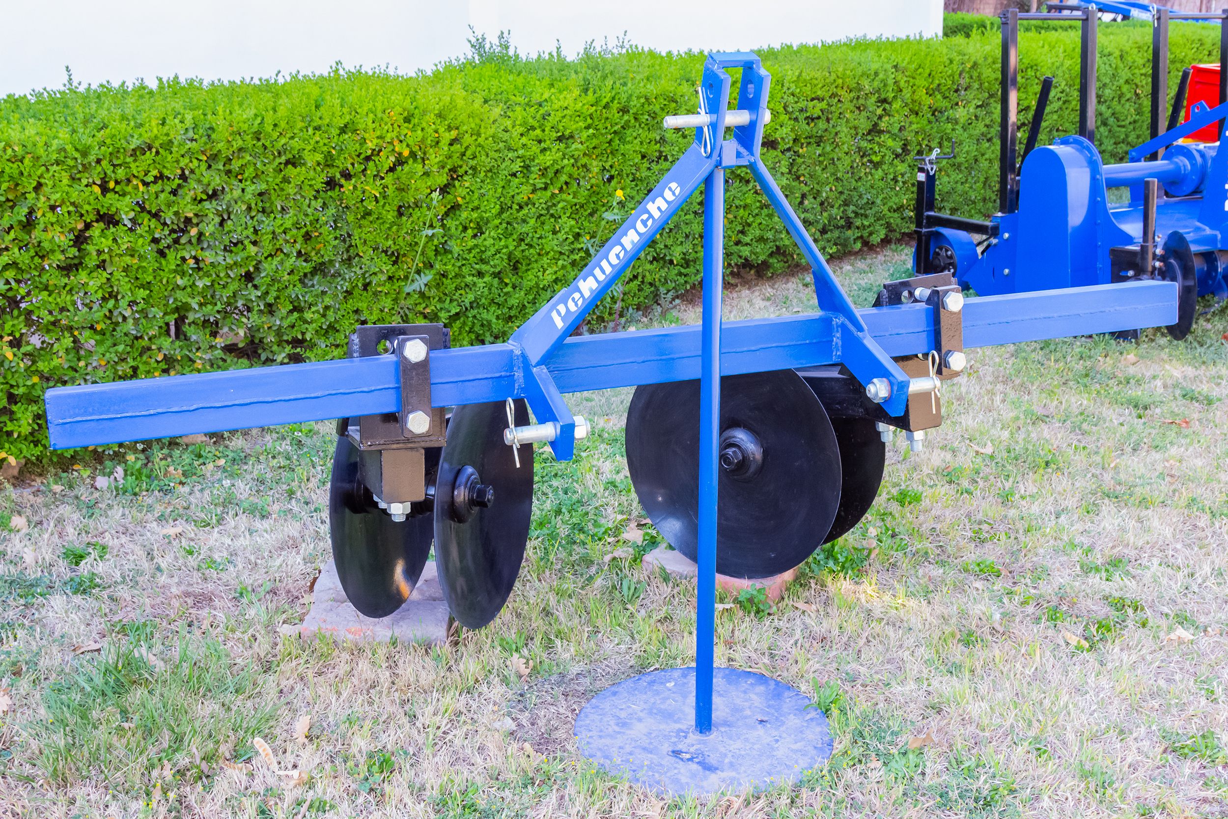De levante hidráulico de tres puntos. Equipado con cuatro discos de 22″, ancho de trabajo regulable. La inclinación de los discos es variable. Montado sobre bujes. Permite hacer bordos de riego.