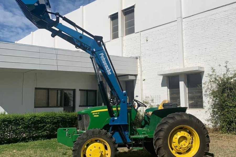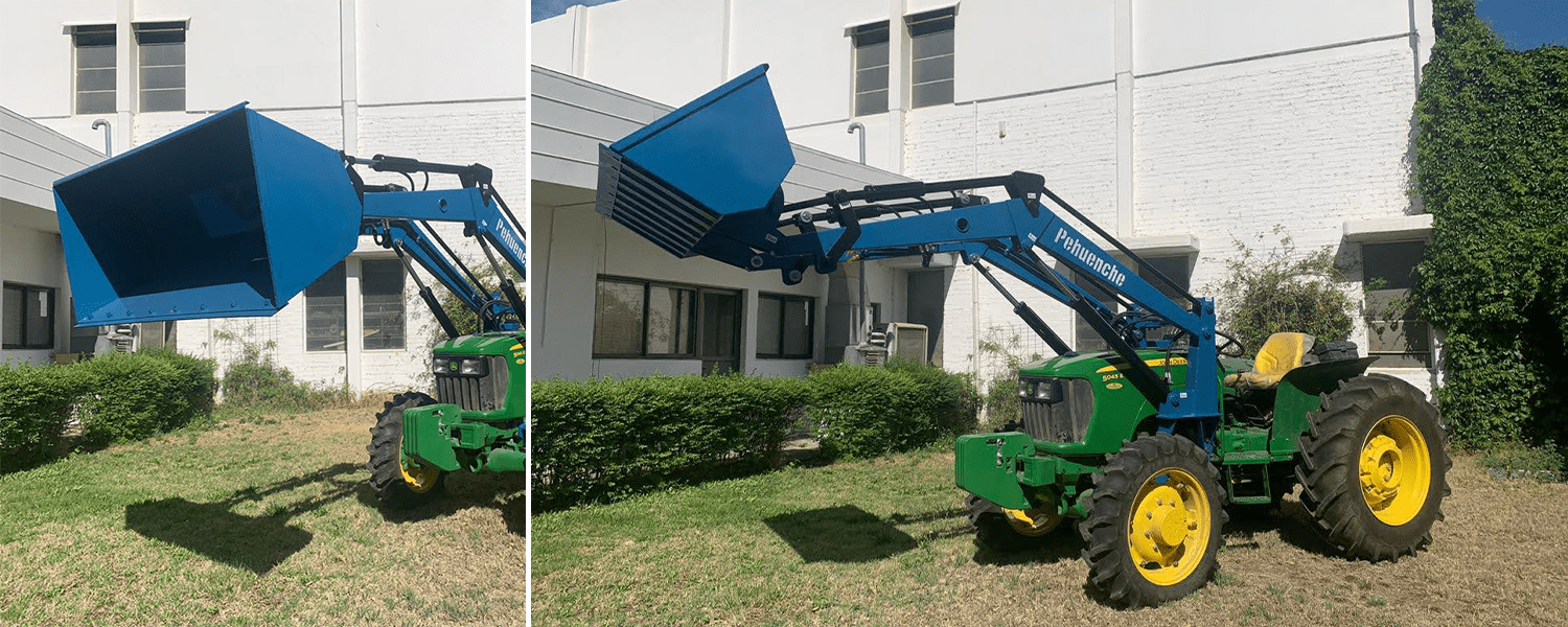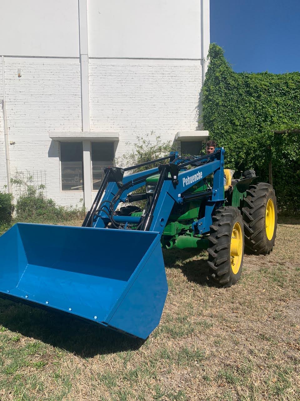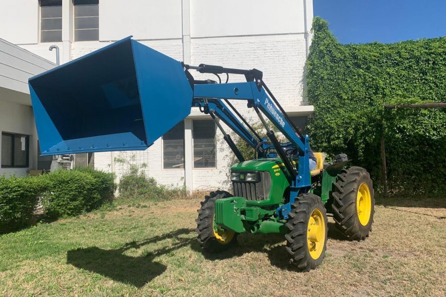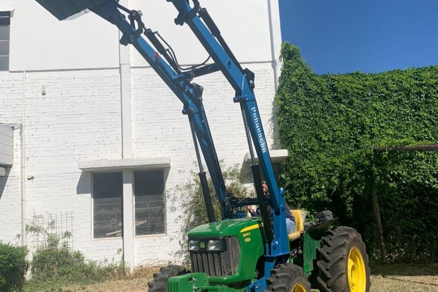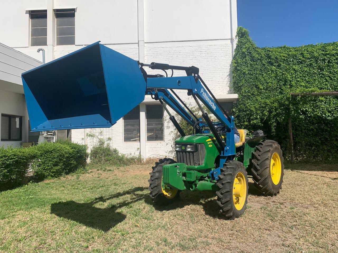 Aplicable a tractores convencionales, montada sobre bastidor independiente, pernos y bujes de acero. Sistema hidráulico integrado al equipo del tractor. Sin accesorios en el frente y sin llave comando.