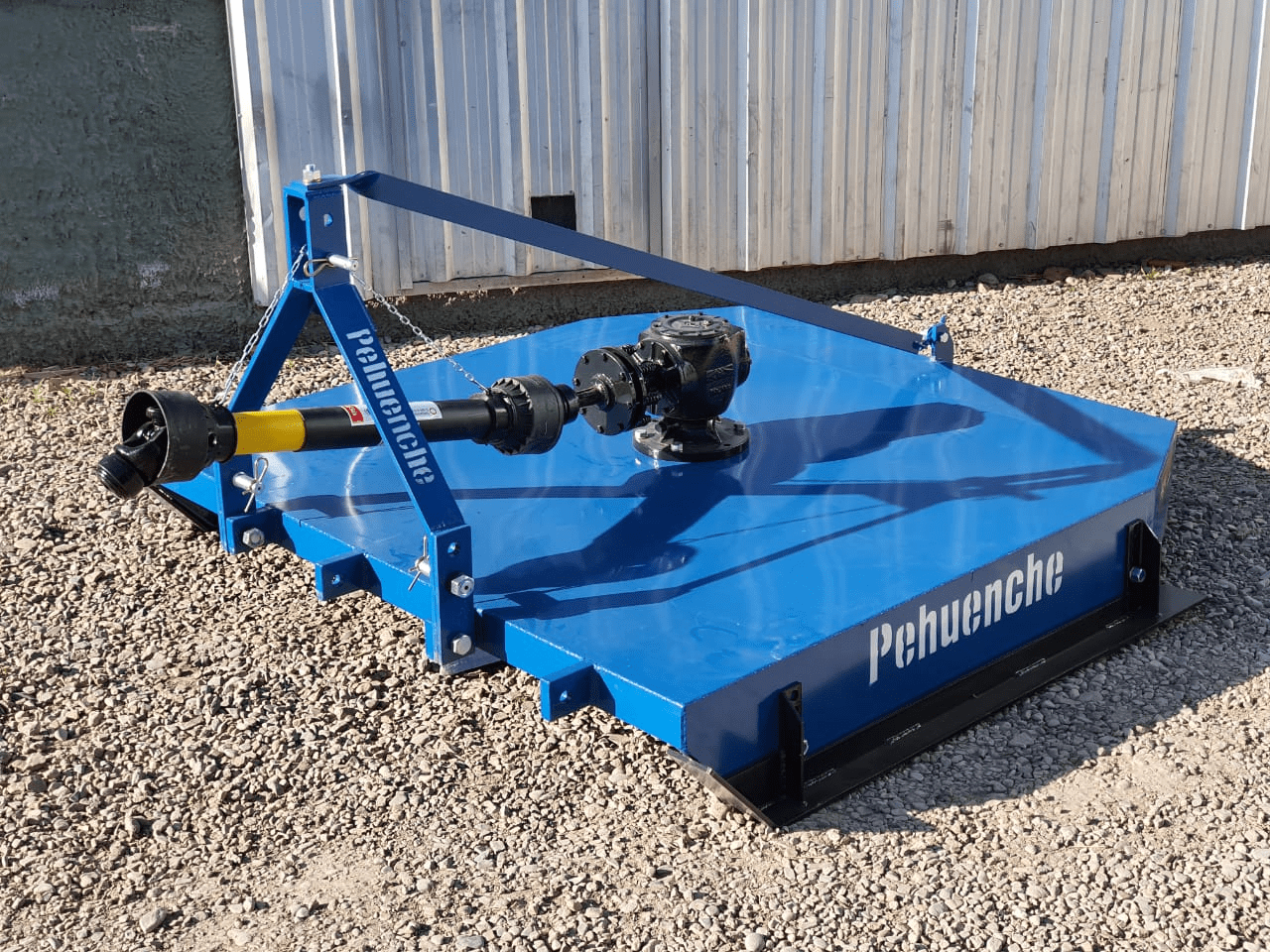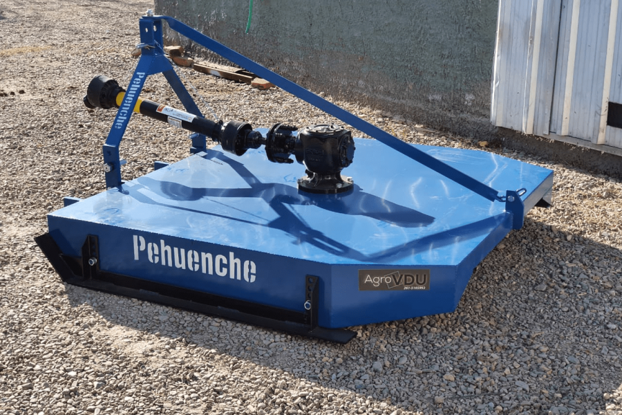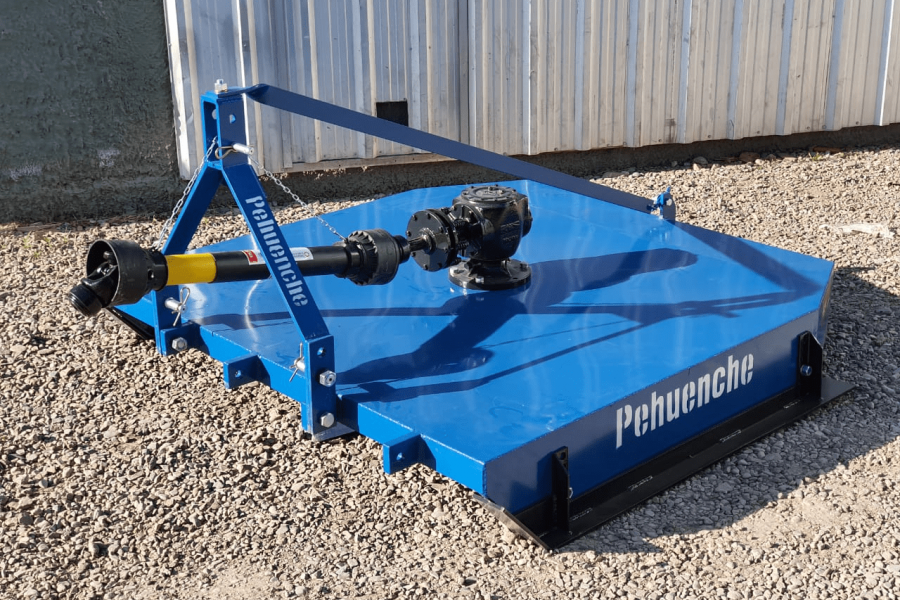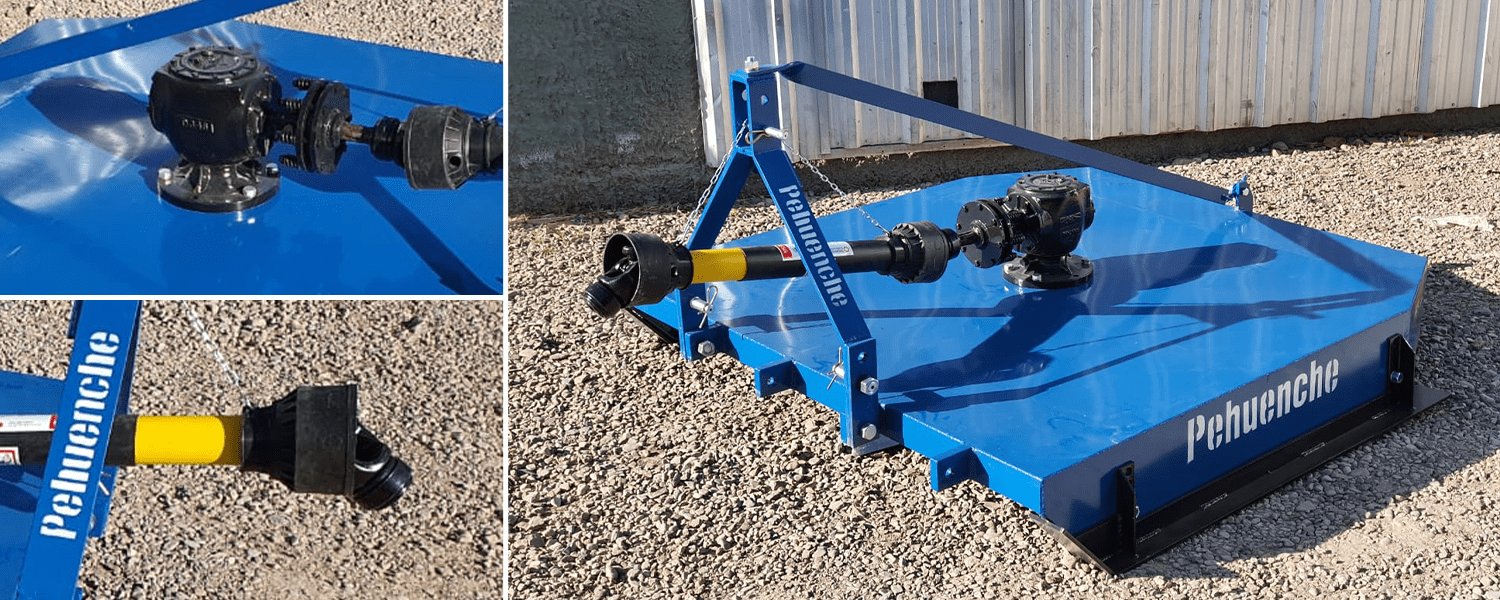 De levante hidráulico de tres puntos. Con sistema incorporado para accionamiento central o desplazado. Plato desmalezador de corte angular con dos cuchillas. Cabezal reforzado con embrague.