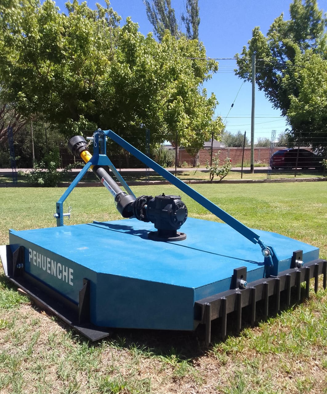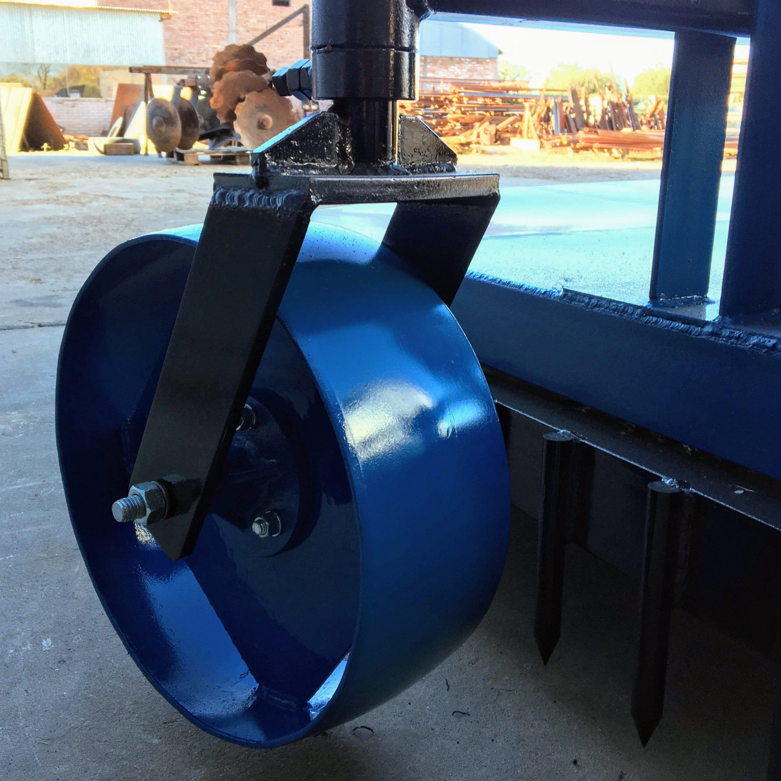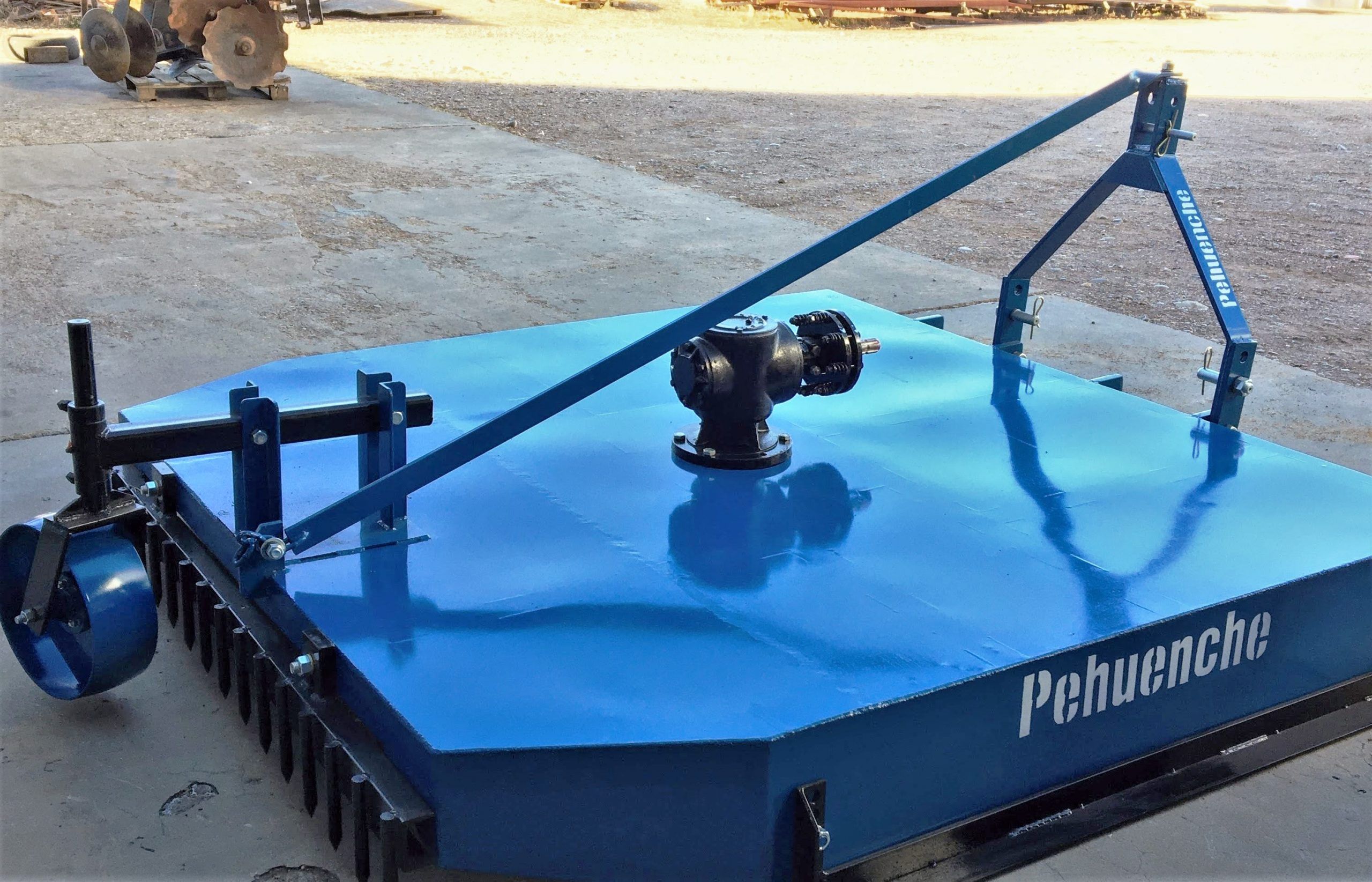 De tiro retráctil con llantas para neumáticos de 15″. Con sistema incorporado para accionamiento central o desplazado. Plato desmalezador de corte angular con dos cuchillas. Cabezal reforzado, embrague regulable.
