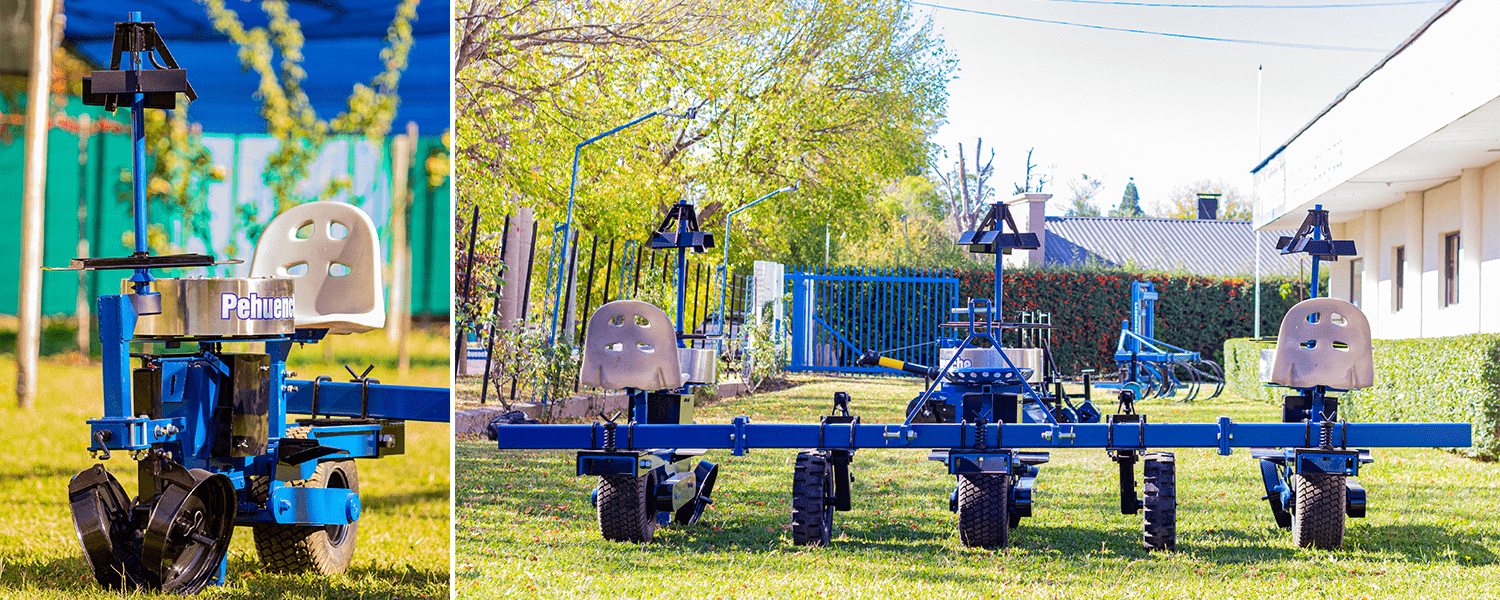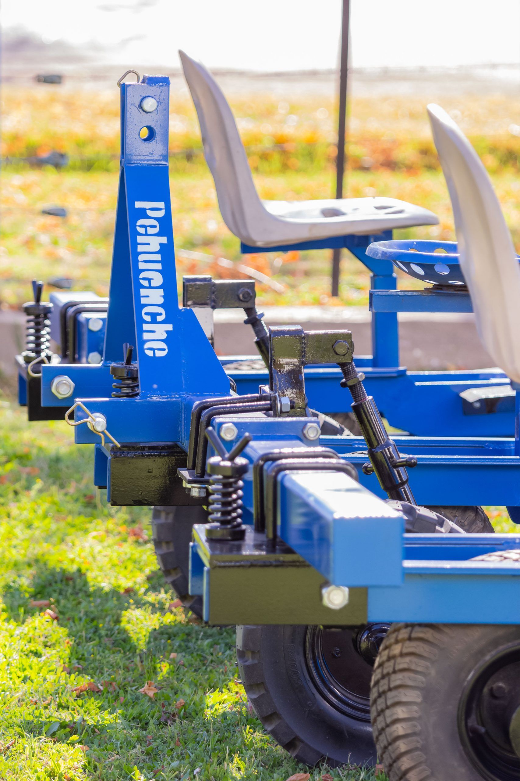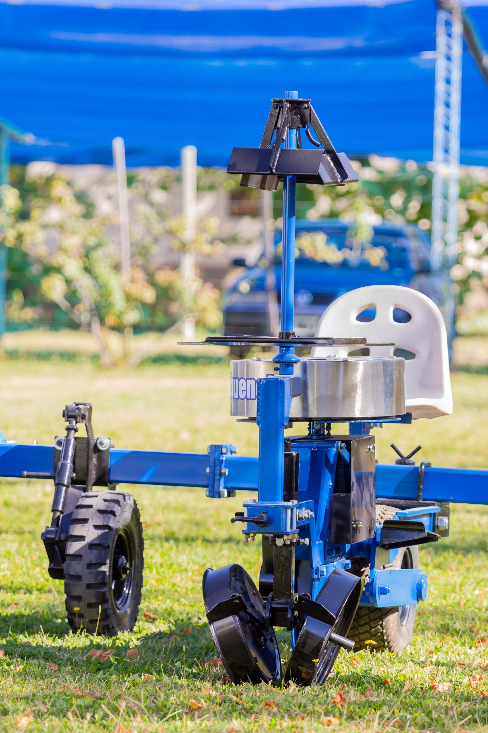 Máquina para levante hidráulico por rueda de apoyo. Abre surco preciso depositan­do perfectamente posicionado el plantín y luego tapándolo en el mismo movimiento en secuencias precisa y perfectamente reguladas y regulables.