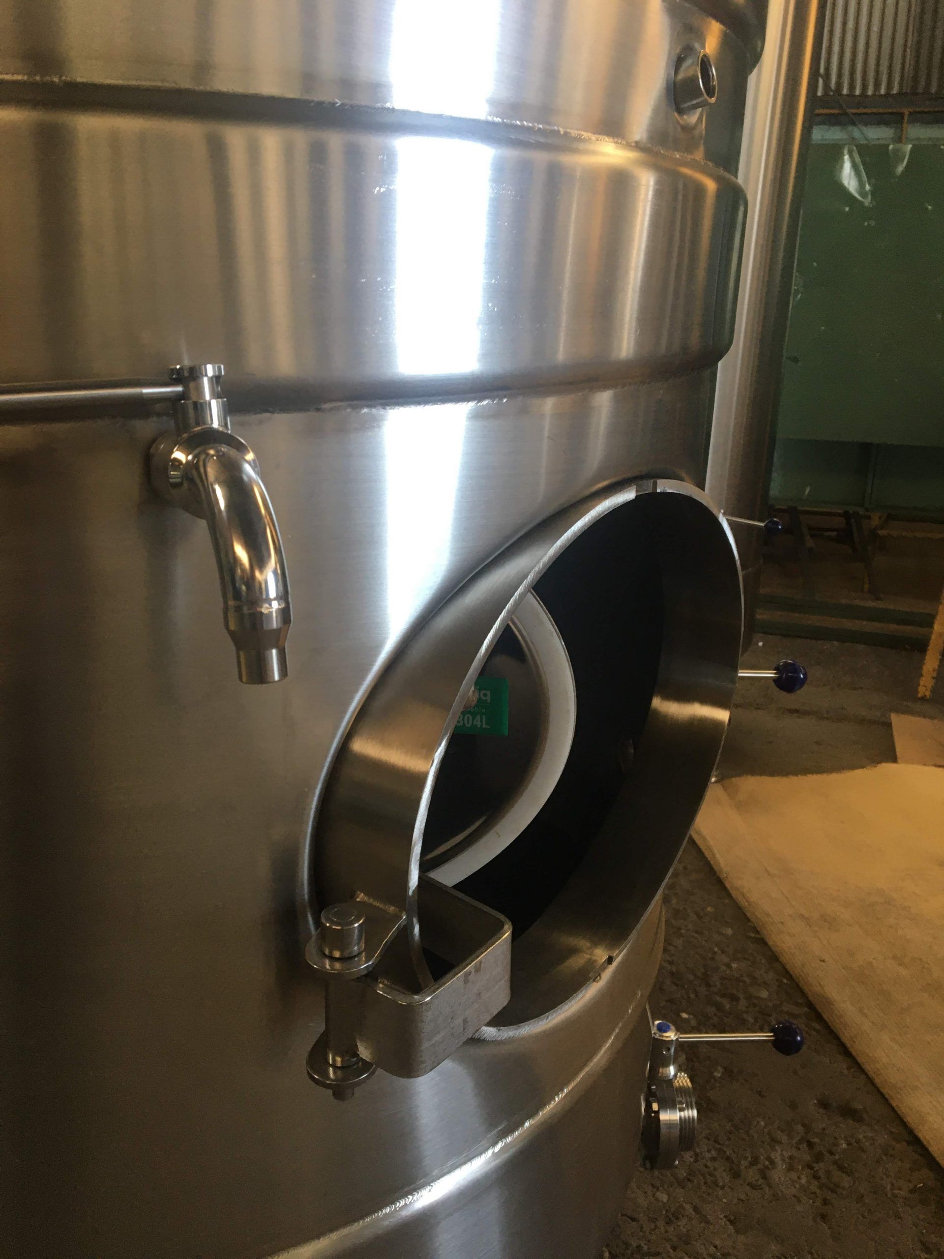 Todos nuestros tanques de fermentación cuentan con espiras de refrigeración, boca superior, válvula de sobrepresión, válvula de salida total y de salida parcial (mariposa DIN 50), válvula sacamuestras, puerta rectangular, cáncamos de izaje, reguladores de patas, termómetro.