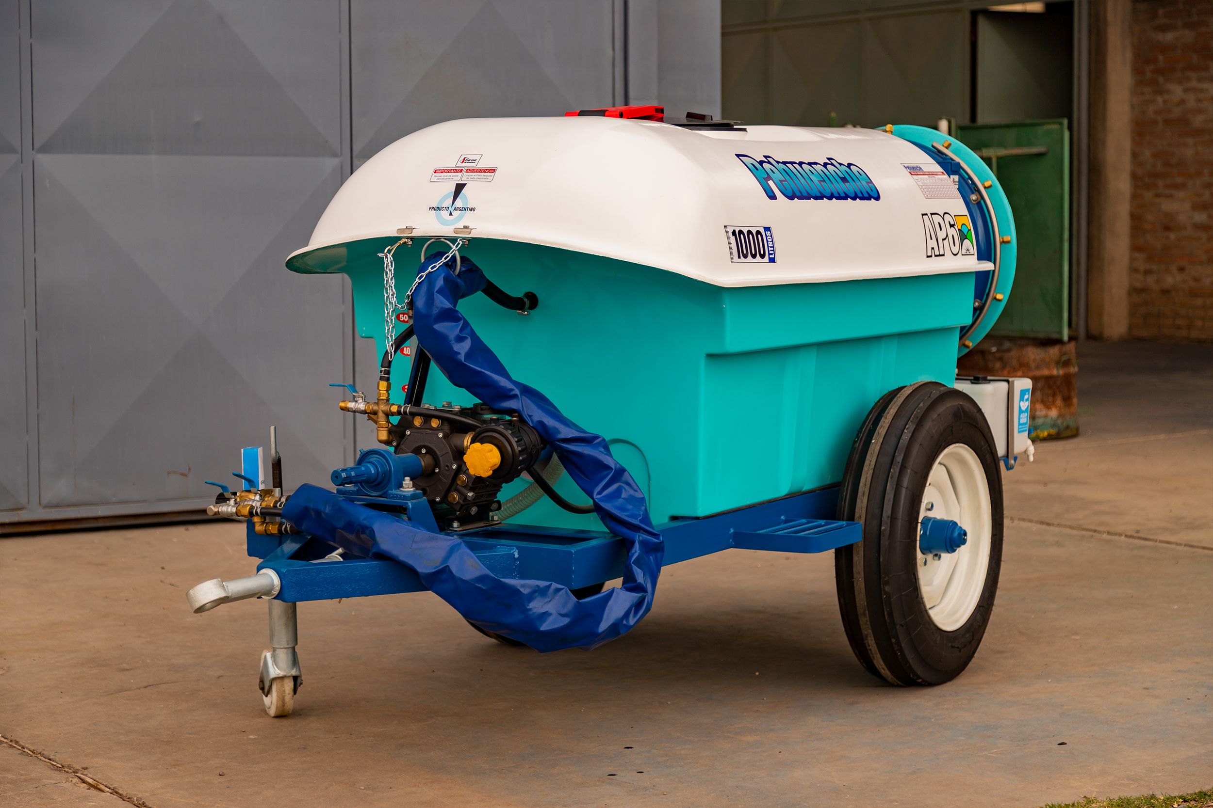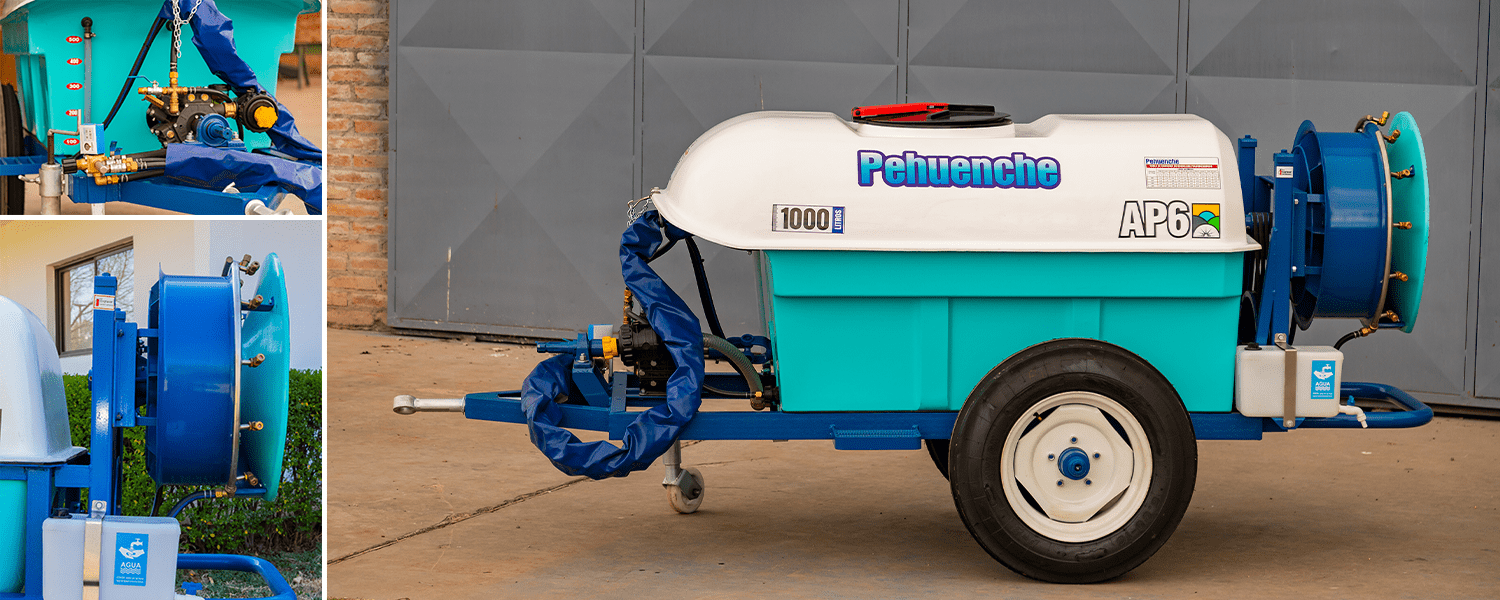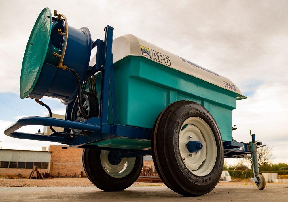 De arrastre, para fumigar viñedos, yerba mate o plantaciones similares. Hélice de 0,6 mts. 10 boquillas con pastillas de cerámica. Permite el reemplazo del atomizador por aguilones sin ninguna modificación.