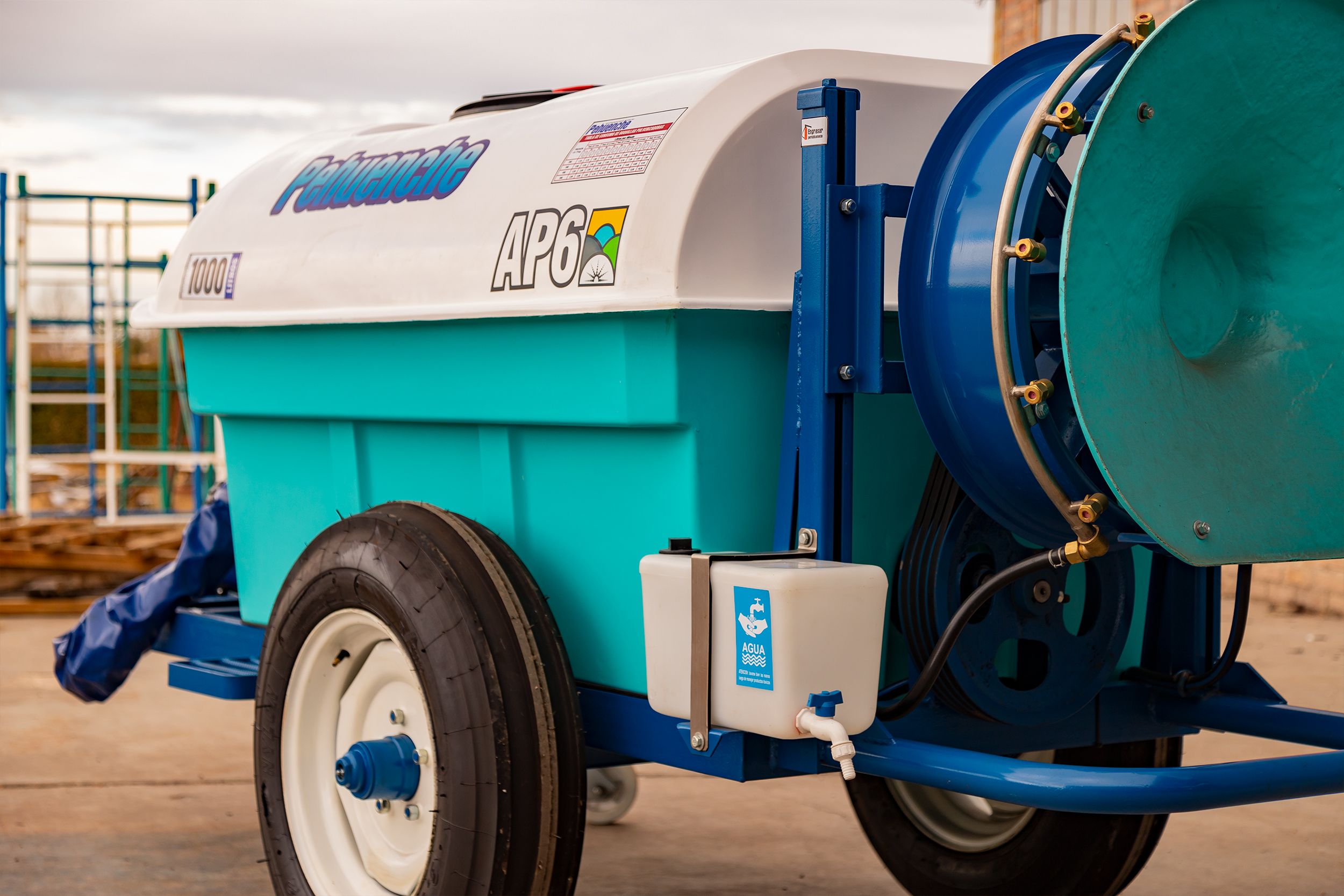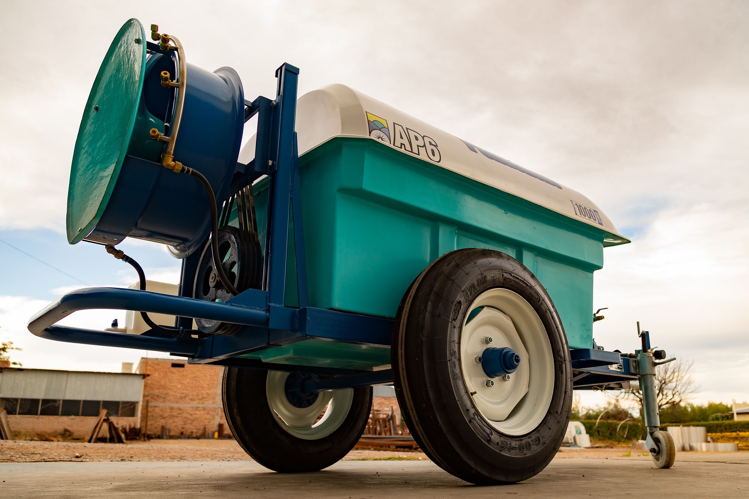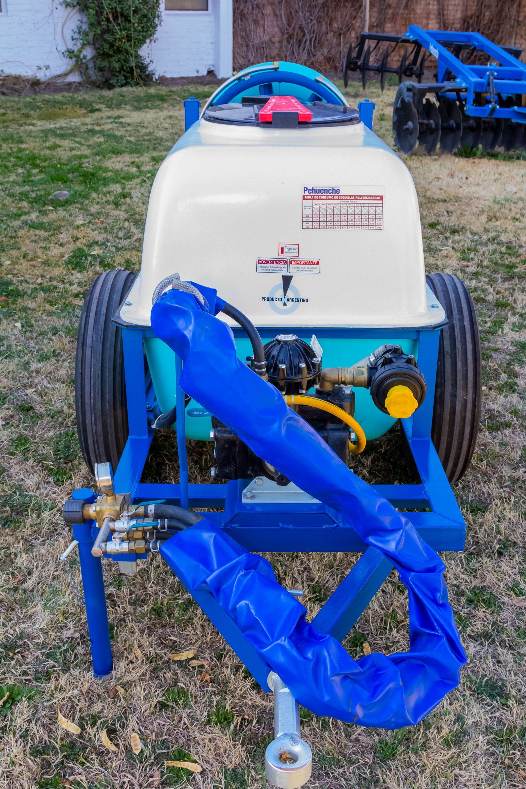 De arrastre, para fumigar viñedos, yerba mate o plantaciones similares. Hélice de 0,6 mts. 10 boquillas con pastillas de cerámica. Permite el reemplazo del atomizador por aguilones sin ninguna modificación.