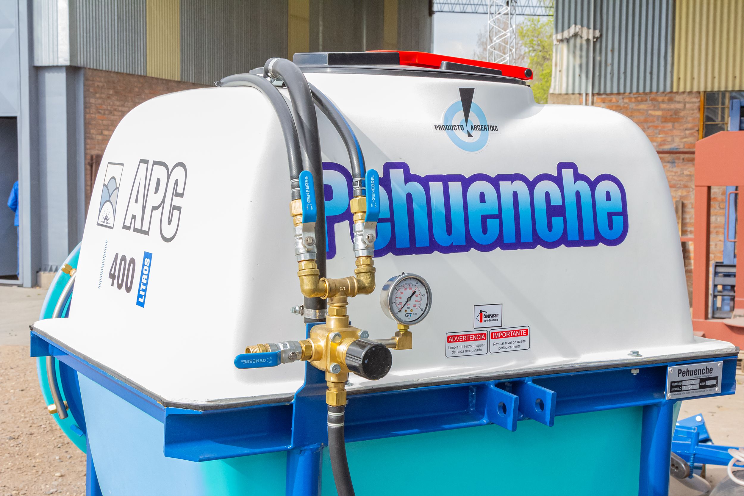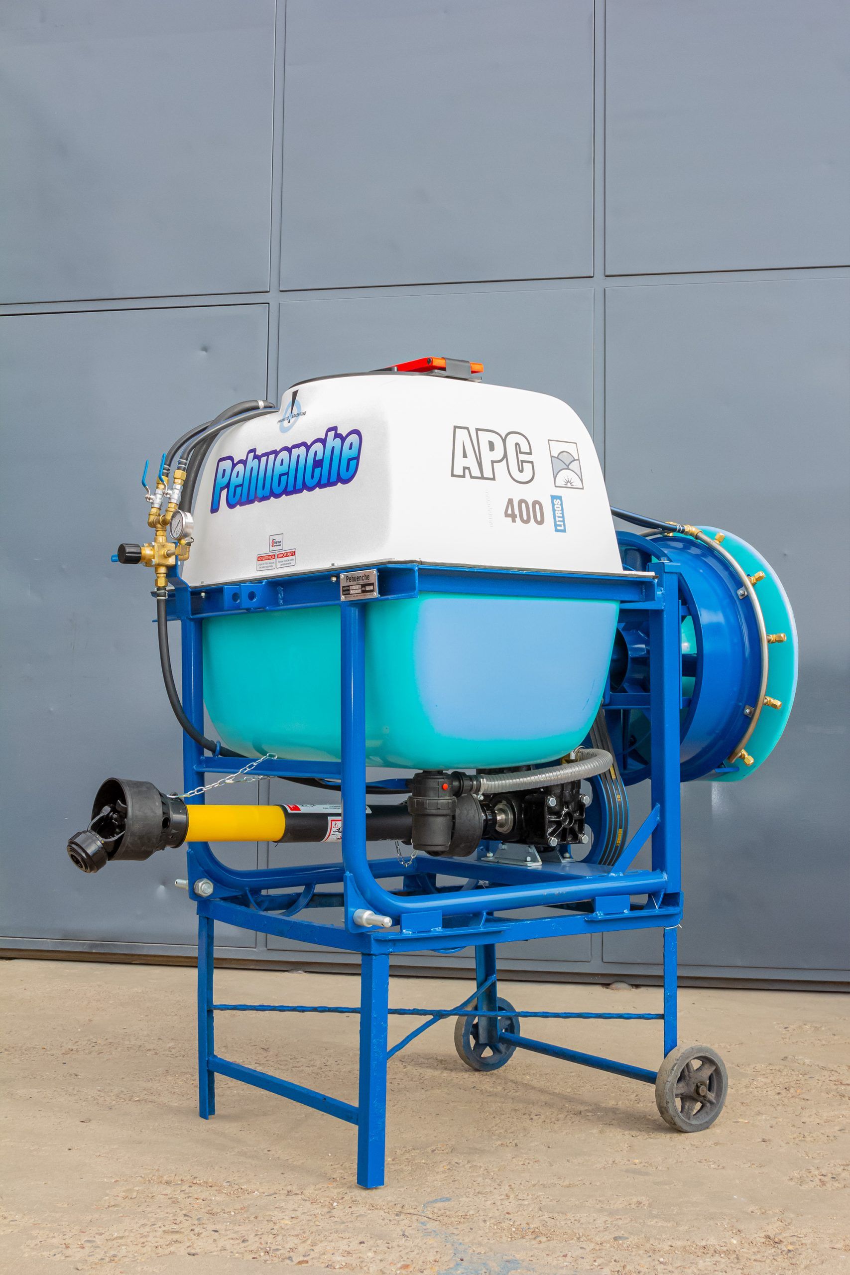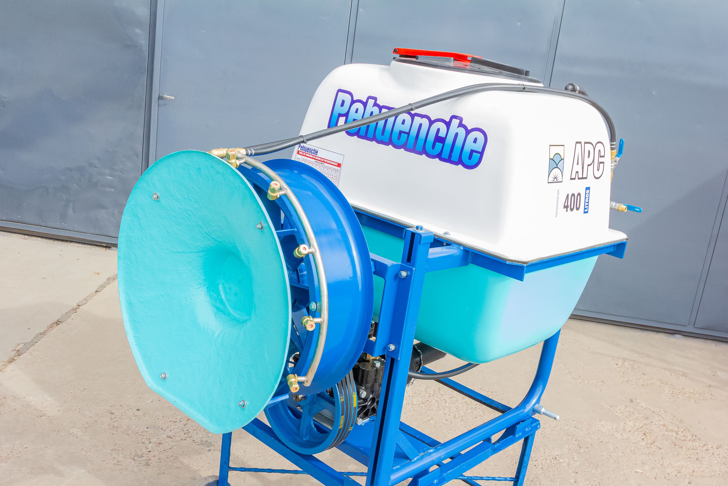 Para aplicar al levante hidráulico del tractor, para fumigar viñedos hélice de 0,6 mts. 10 boquillas con pastillas de cerámica. Permite el reemplazo de la hélice por aguilones sin ninguna modificación.