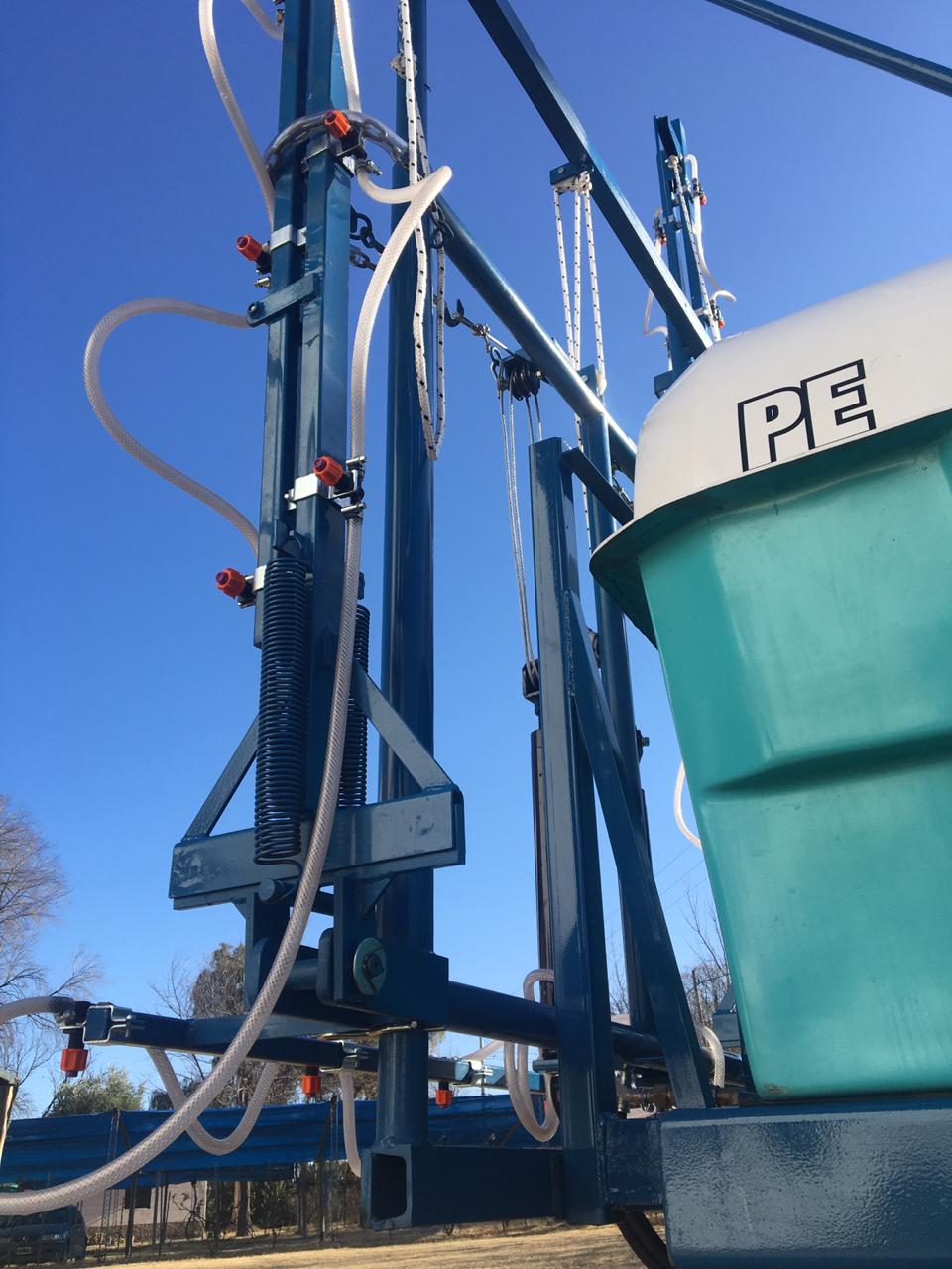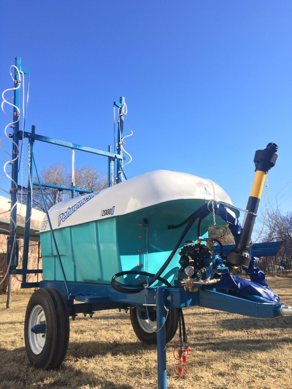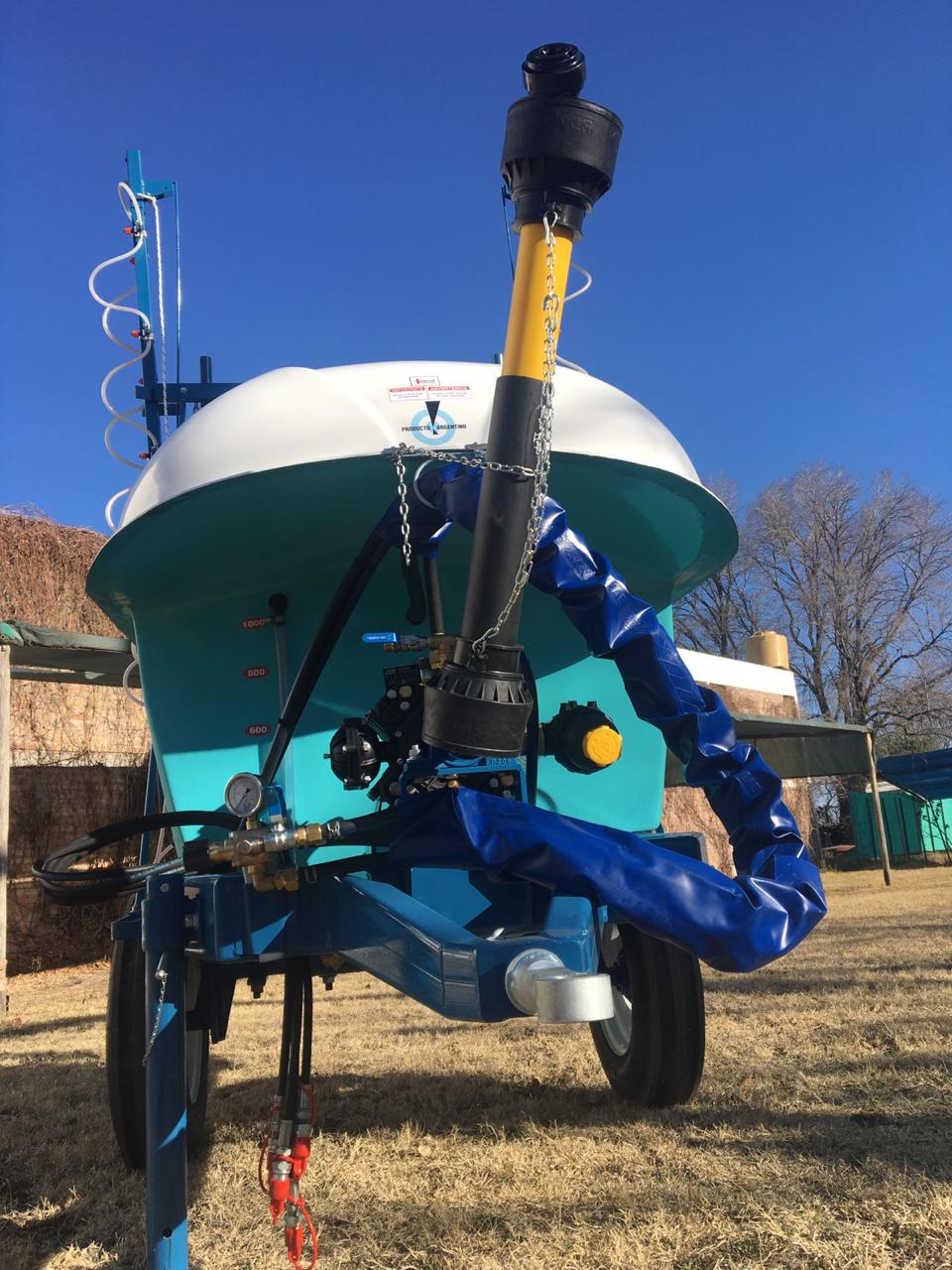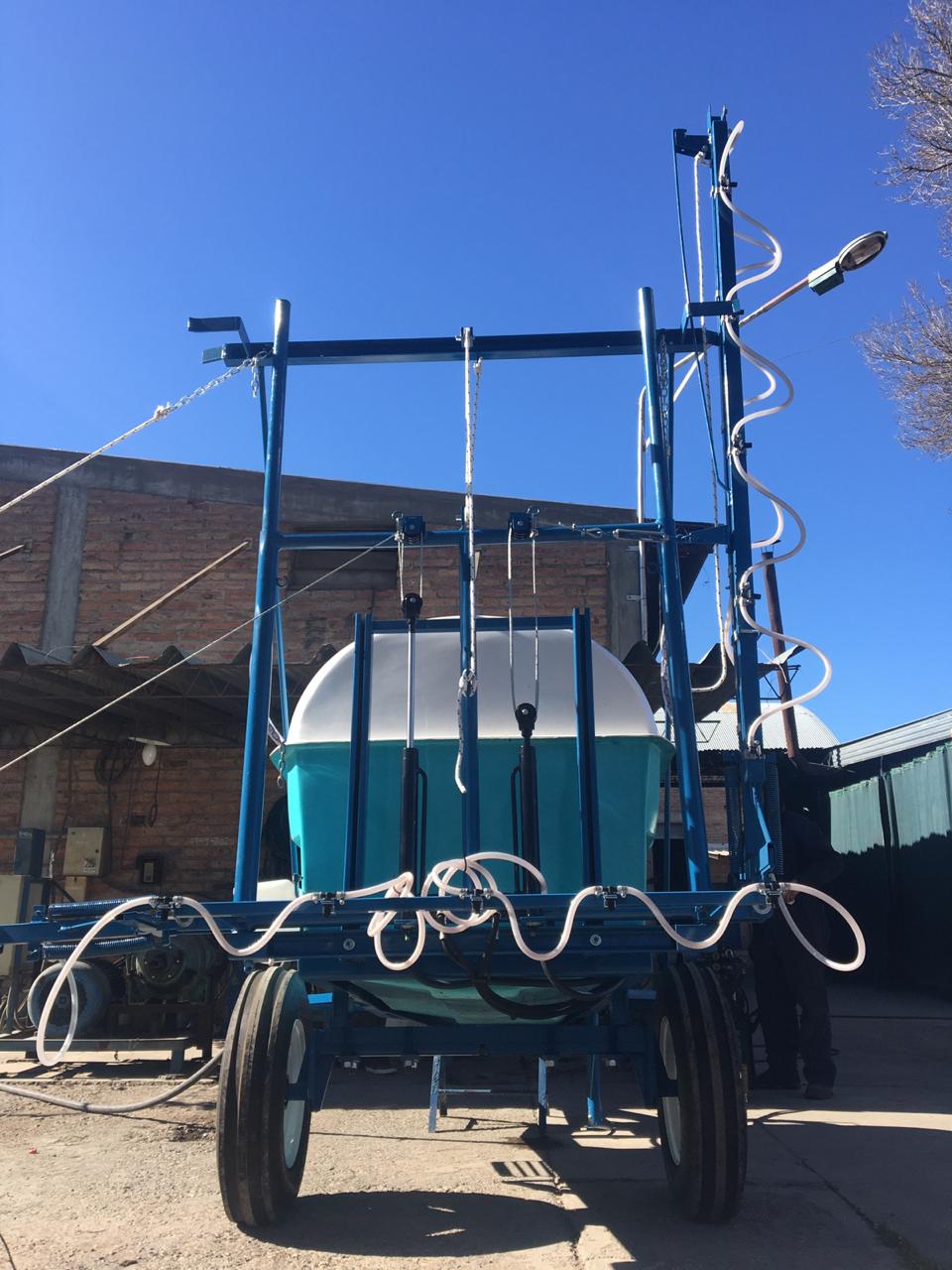 De arrastre, para fumigar cultivos bajos. Despegue del suelo O, 55 mts. Eje extensible o regulable de 1,40 mts. a 1,90 mts. Llanta rodado 15, con cubiertas agricolas.