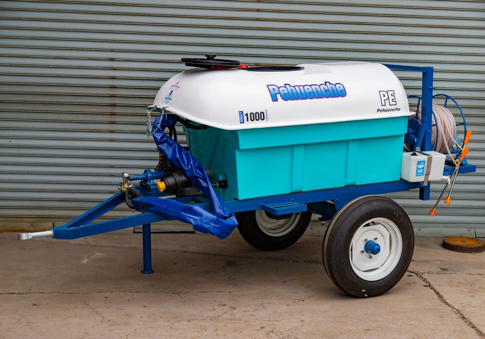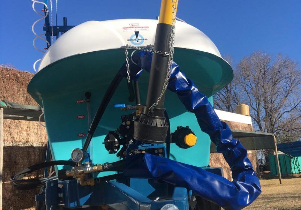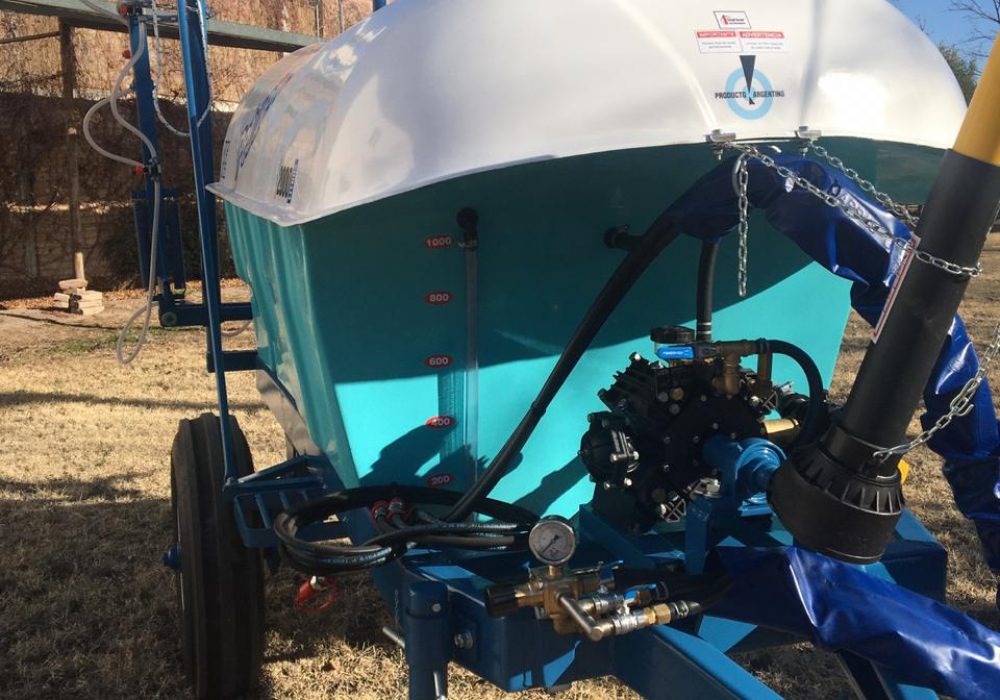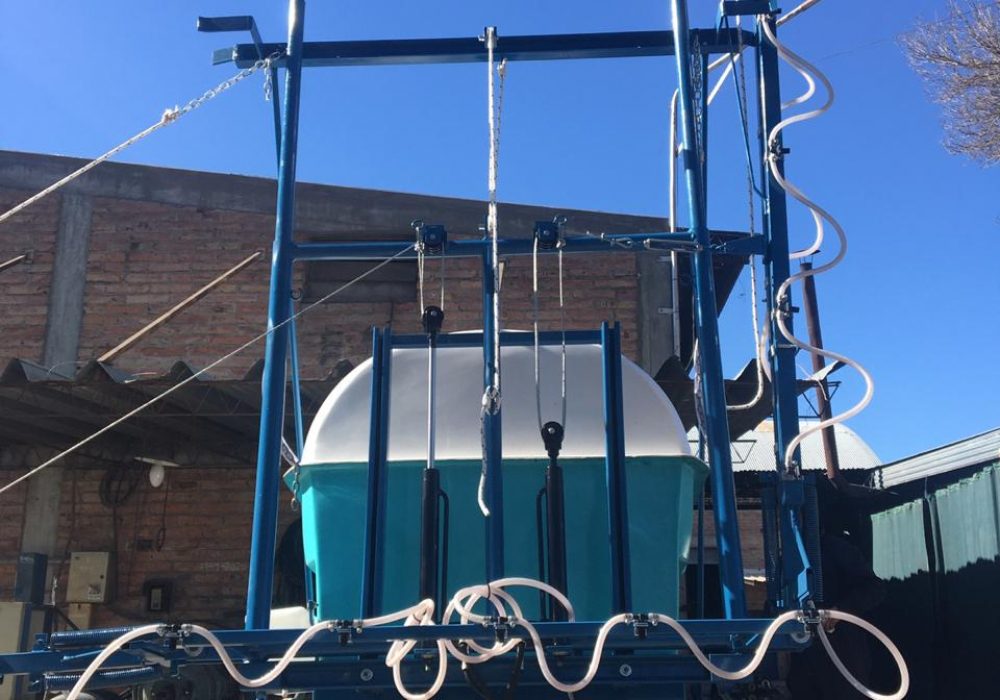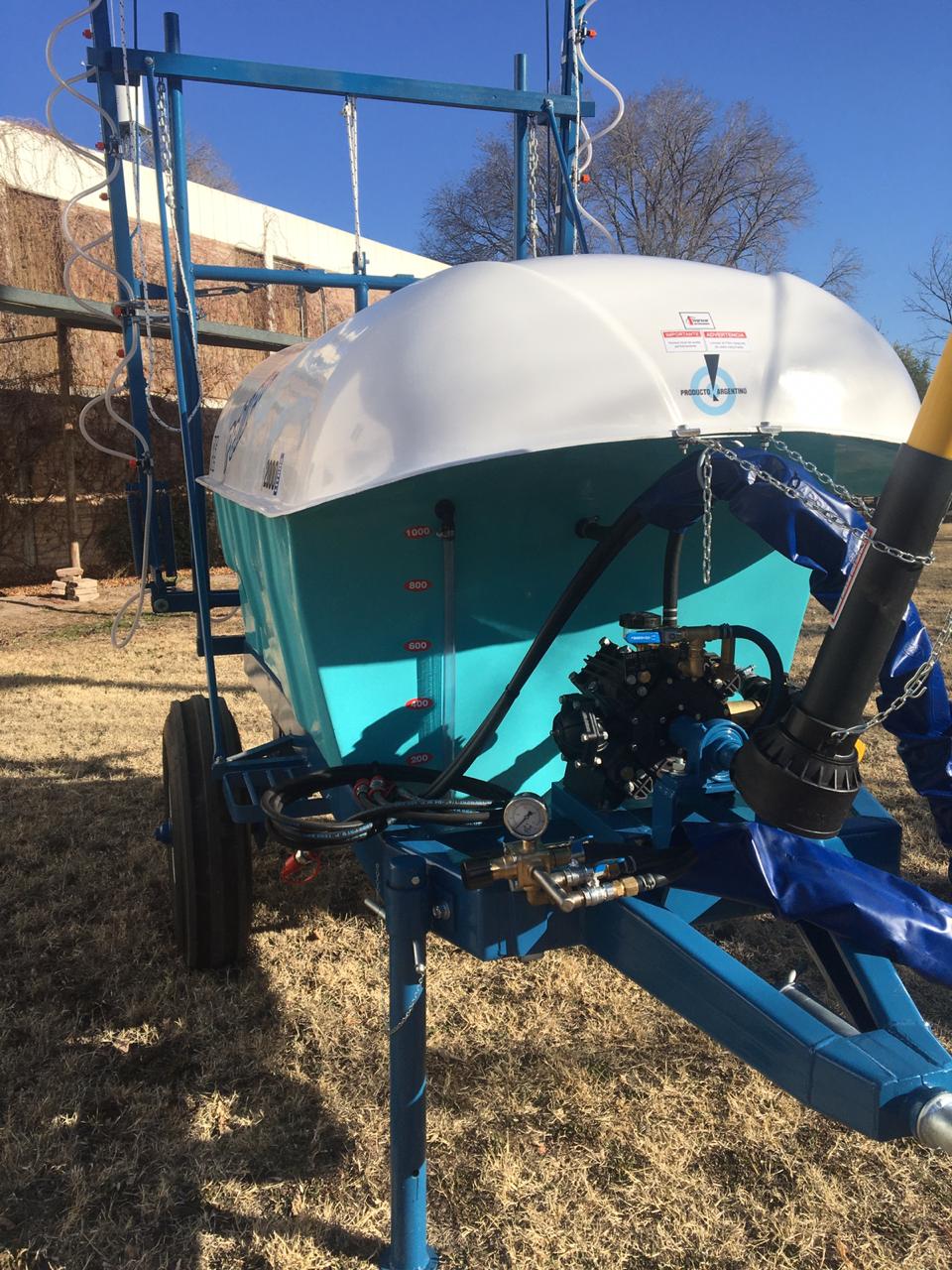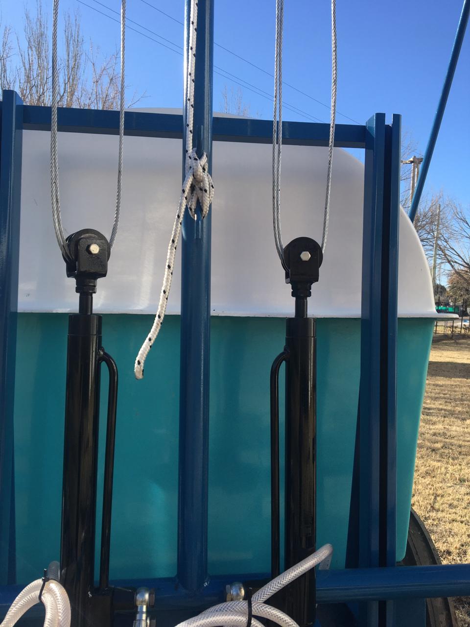 De arrastre, para fumigar cultivos bajos. Despegue del suelo O, 55 mts. Eje extensible o regulable de 1,40 mts. a 1,90 mts. Llanta rodado 15, con cubiertas agricolas.