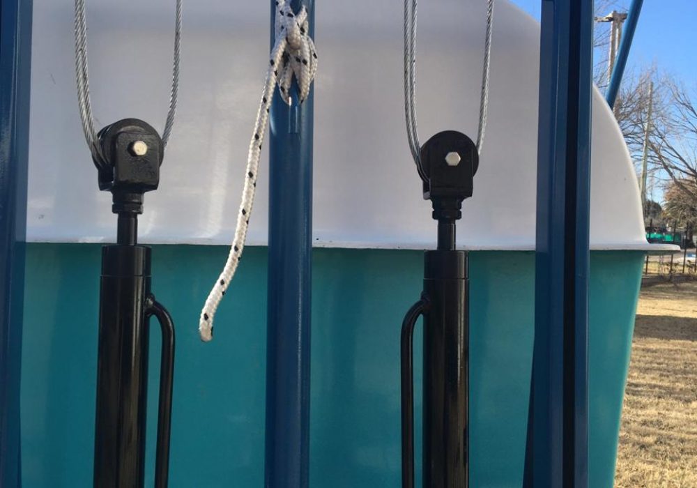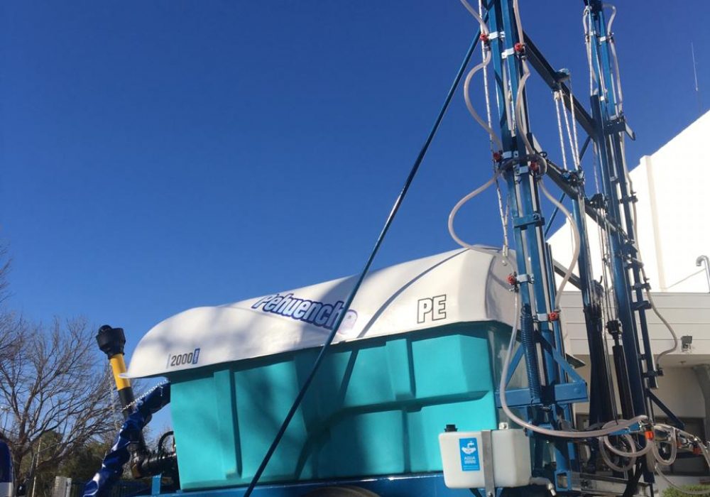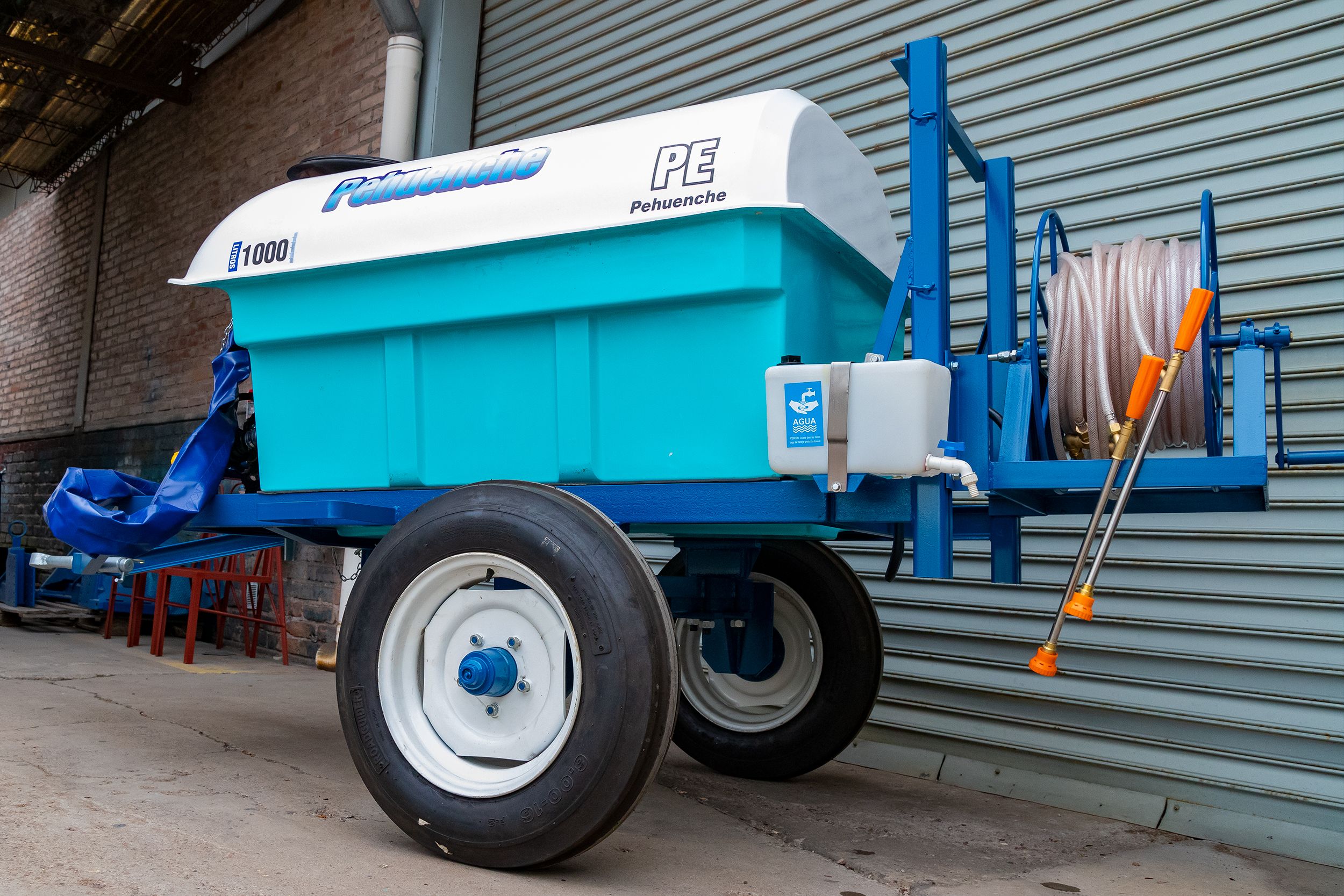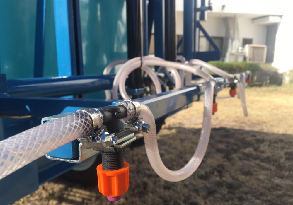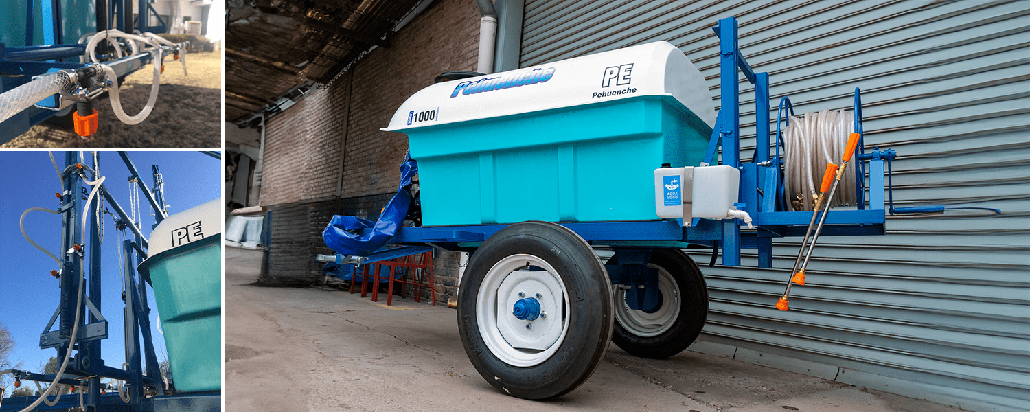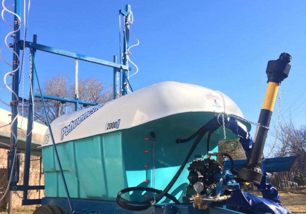De arrastre, para fumigar cultivos bajos. Despegue del suelo O, 55 mts. Eje extensible o regulable de 1,40 mts. a 1,90 mts. Llanta rodado 15, con cubiertas agricolas.