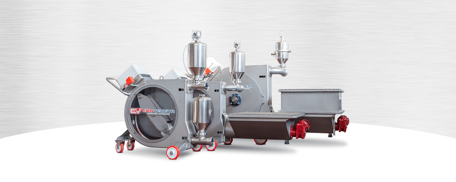 Las bombas peristálticas Enoveneta están disponibles en la versión con tolva, con capacidades de 1 a 50 ton/h, y en la versión para decantación, con capacidades de 10 a 700 hl/h.