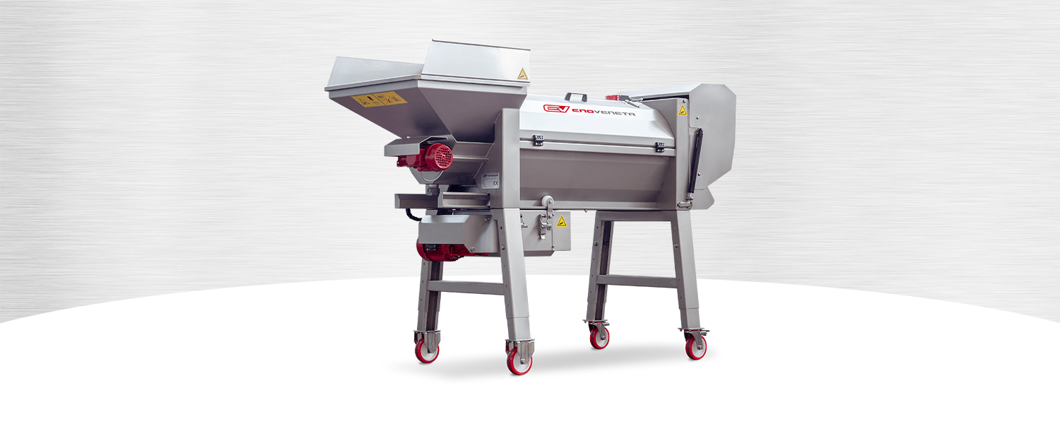 Las máquinas despalilladoras de la serie TOP de Enoveneta con una capacidad horaria de las 5 a las 26 toneladas/hora, están realizadas con bastidor de acero inoxidable AISI 304 sobre ruedas.